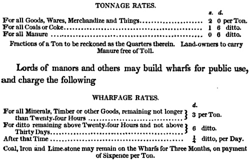 Union Canal Company listed only six of the sixty wharfs north of