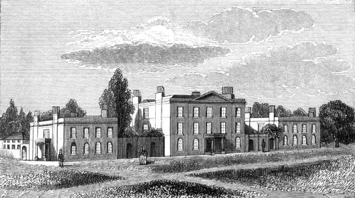 of a centre and two detached wings, with lawn in front; these form