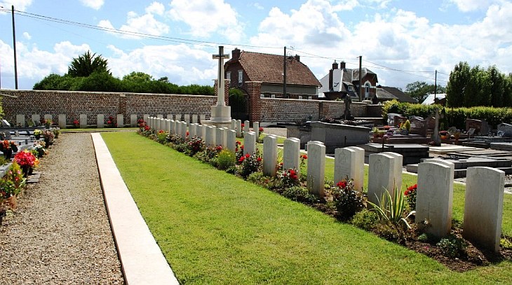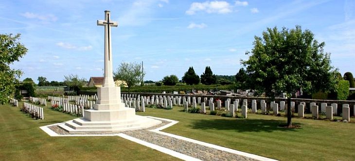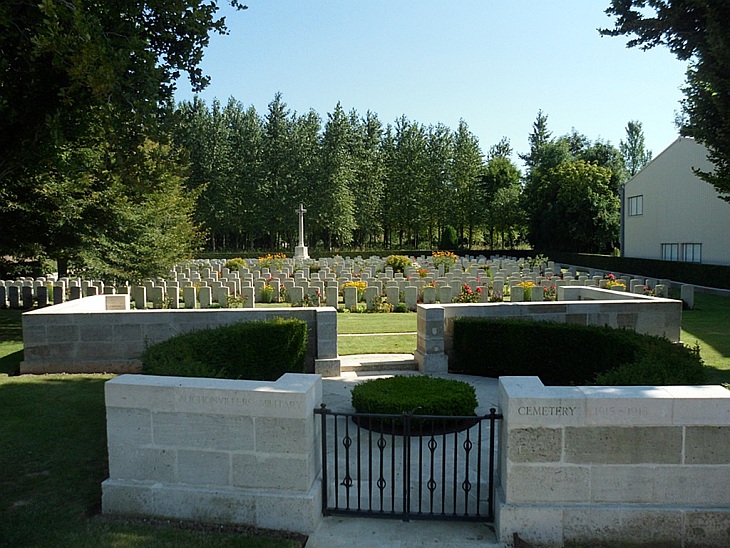 Buried in Laventie Military Cemetery, La Gorgue, France, grave ref.