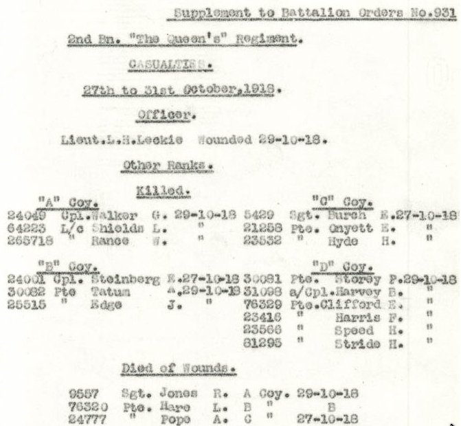 of the 2/1 Ox and Bucks Light Infantry for that date: