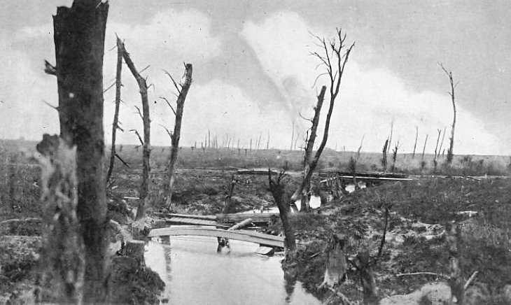 Battle of the Chemin des Dames, 27th May 1918.German troops crossing a canal and awaiting orders to continue the