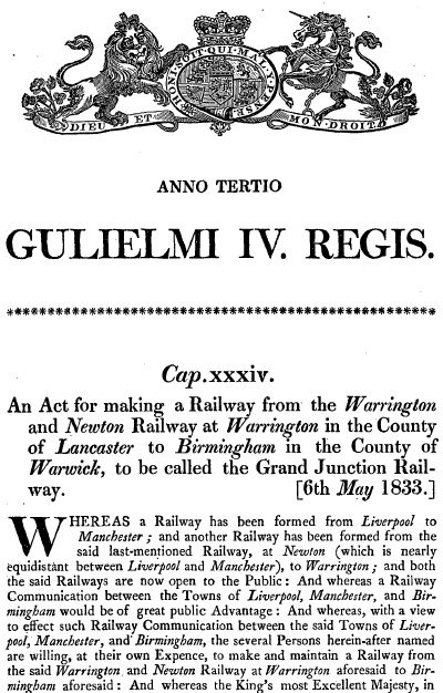 the County of Warwick to be called ‘The Grand Junction Railway’ (RA