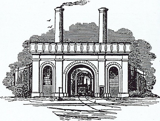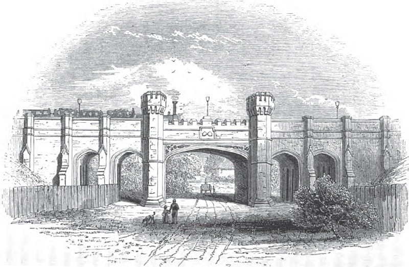 Lodges, on each side, for Offices” by John Cooke Bourne, 1838.