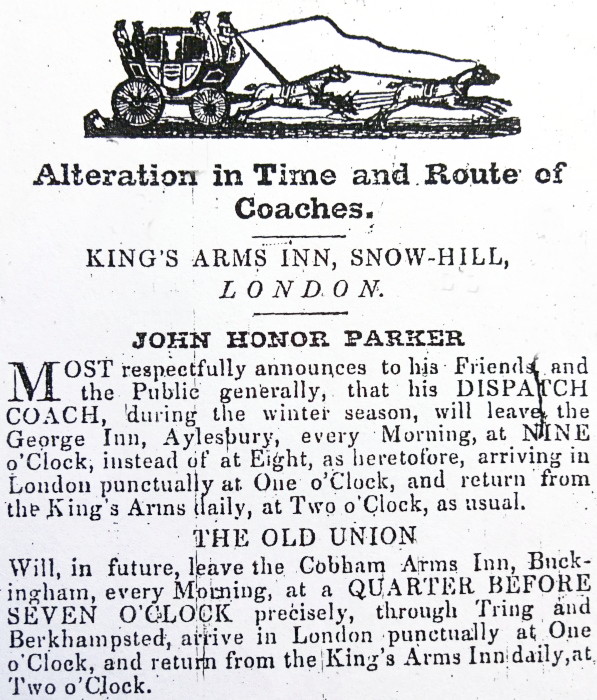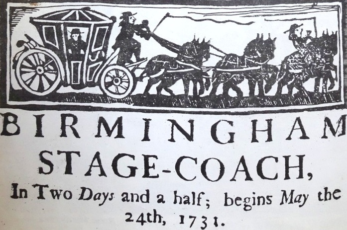An early stagecoach advertisement, from the Birmingham Mail.