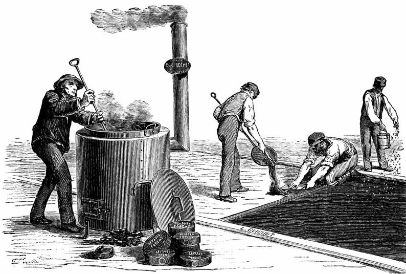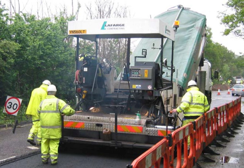 insulated lorries and laid at a high temperature by a paving machine,
