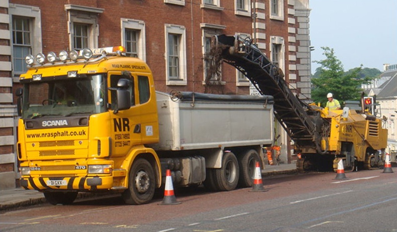 surface is dumped directly into trucks for recycling. The planed