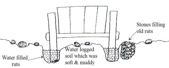 filling in ruts and holes with whatever material came to hand, clearing