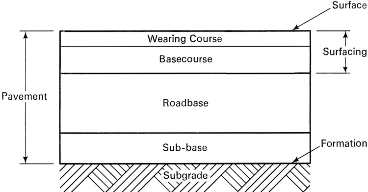 Cross-sectional diagram of an idealized Roman road as found in Britain.