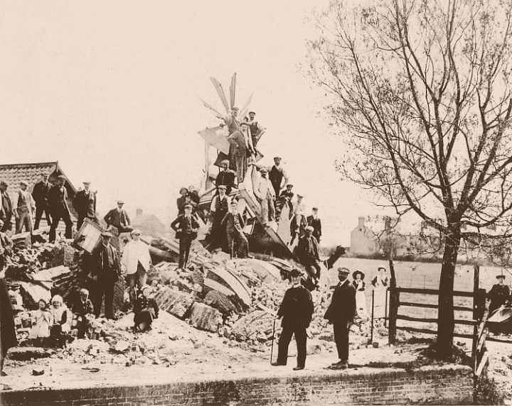 Gamnel Wharf tower mill about to be pulled down, 4th May 1911.