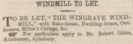 The smock mill at Wingrave stood at Windmill Farm. It had been