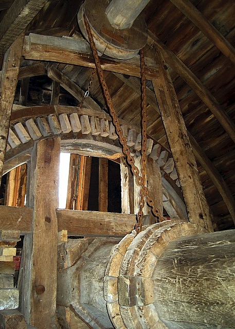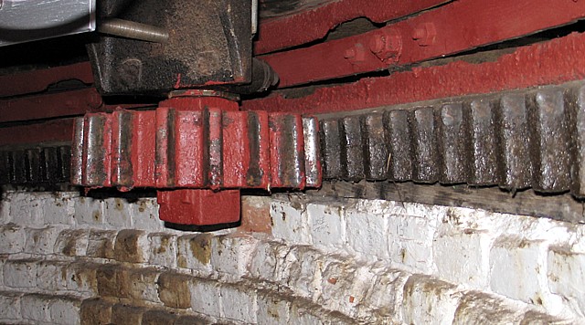Plate 5: Brake wheel, wallower and (under-driven) millstones,
